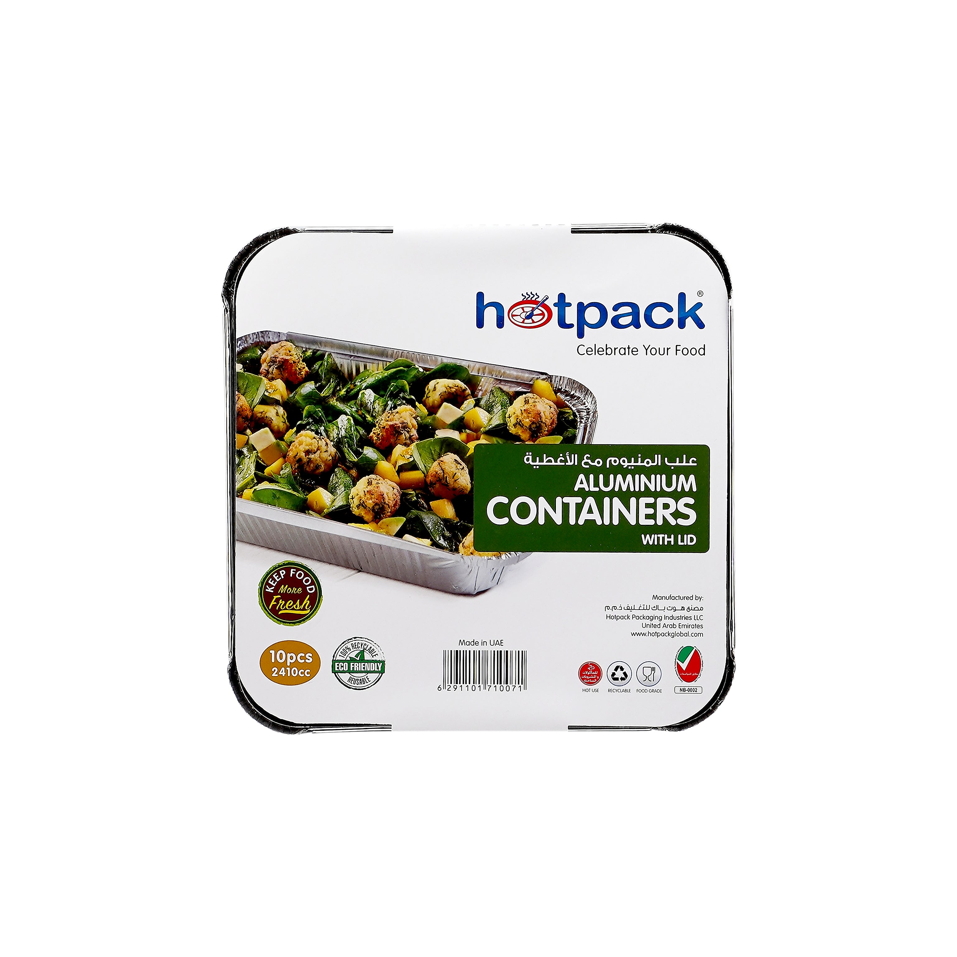 Hotpack Aluminium containers are disposable and can be used to store and serve food. Containers made of aluminium foil keep in heat, act as a freshness barrier to moisture and oxygen and can be recycled. Our containers are made of heavy duty aluminium for strength, ease of use and reuse. Choose the size that fits your needs or order a range to match the most growing cooking needs. Serve your favorite dish, snap on the lid, and you can freeze it or take it with you to share among your friends and family. These containers are ideal for small meals, side dishes, pastries and food service, and they work well for hot or cold food.